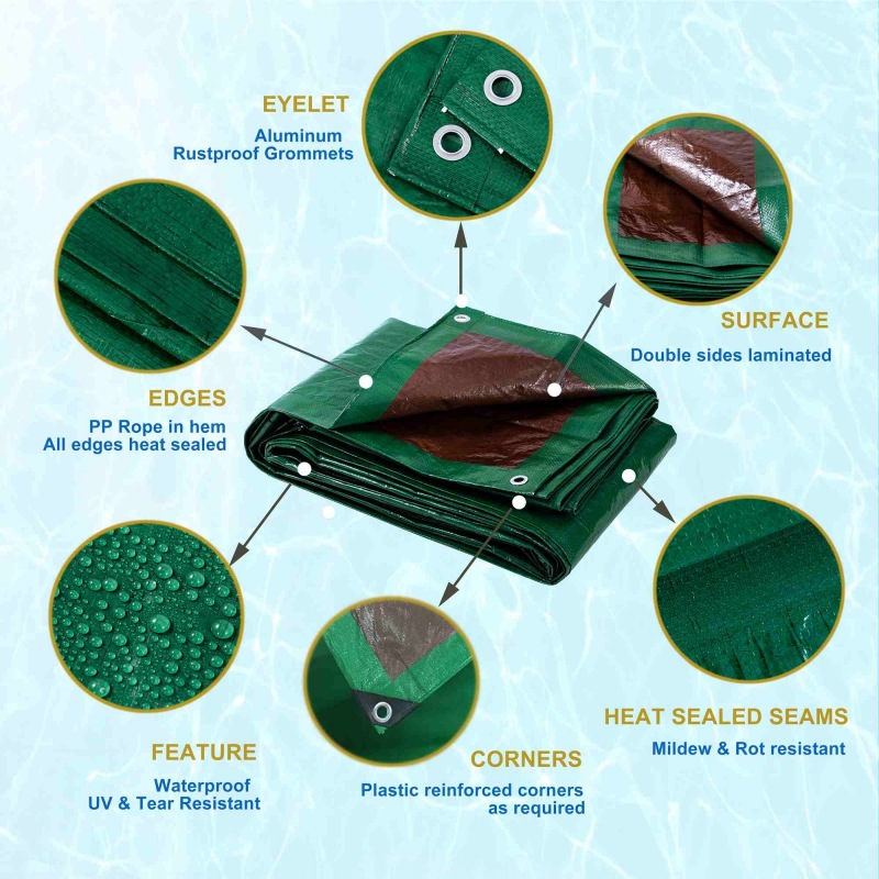8'x10' 110GSM भूरा हरा पीई तिरपाल कवर सुरक्षा के लिए